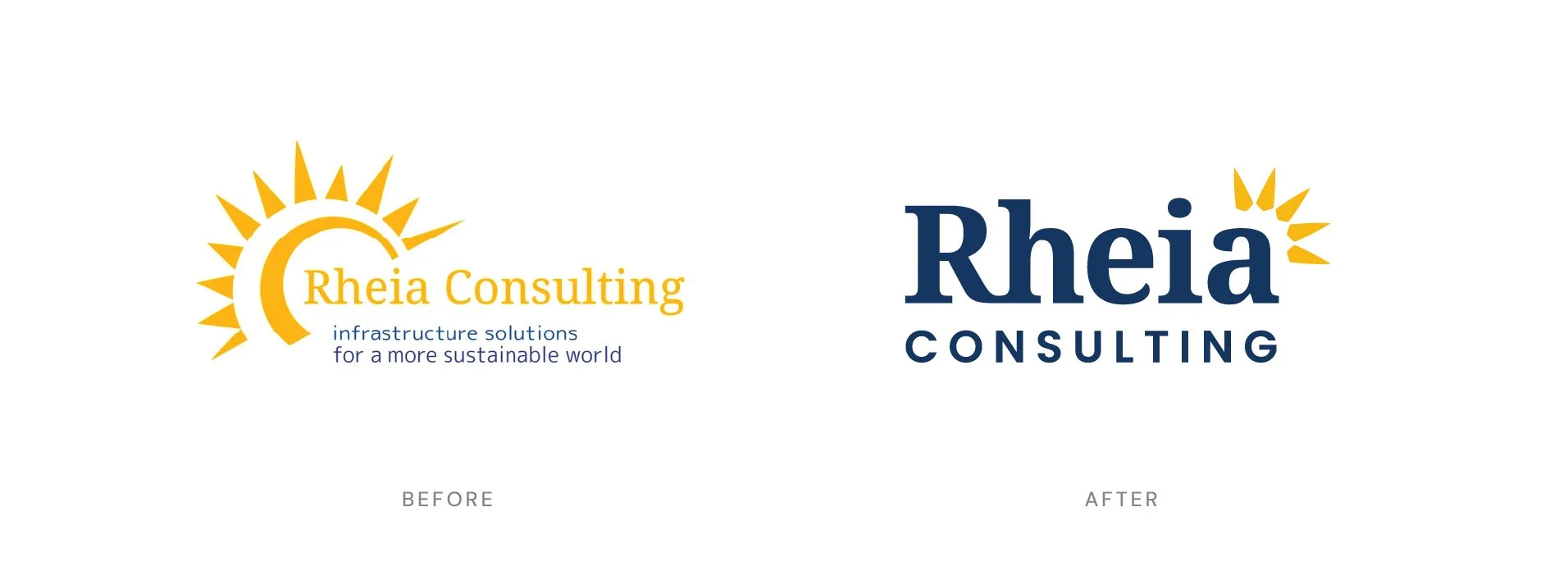 One of my clients, Rheia Consulting, came to me with a DIY logo that looked amateur. They were sponsoring events alongside corporate competitors, and they felt embarrassed standing next to those bigger players. They knew their branding didn't reflect the years of expertise and capabilities their firm actually had.
